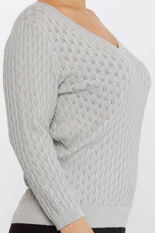 ژاکت بافتنی خود طرح V یقه خاکستری - 31247 | KAZEE (ست 3 M-L-XL)