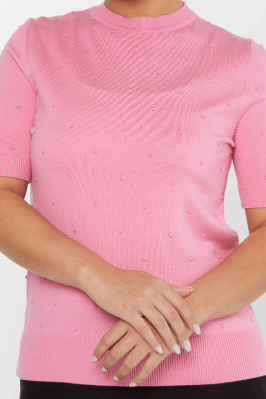 ژاکت بافتنی آستین کوتاه صورتی خود طرح - 30131 | KAZEE (مجموعه 4 M-L-XL-2XL)