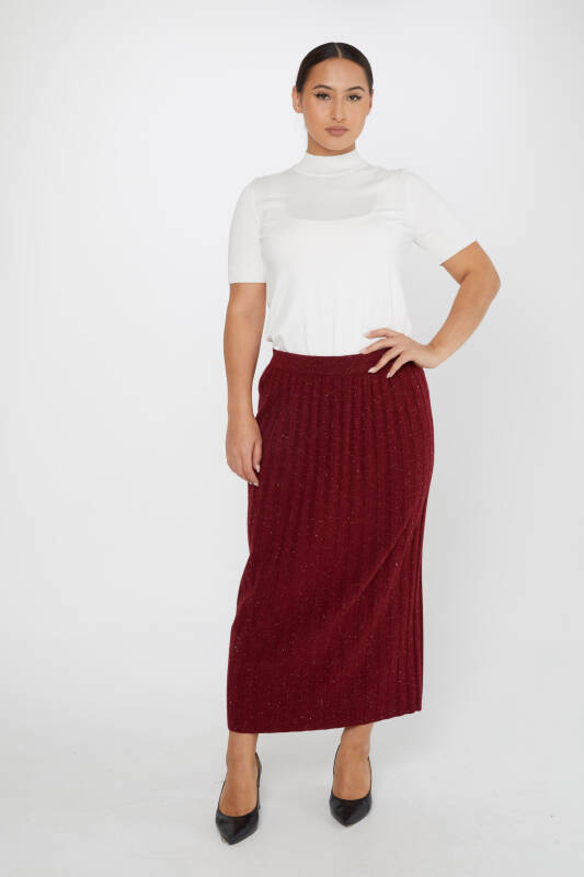 دامن بافتنی با جزییات براق قرمز کلارت بلند - 31548 | KAZEE (مجموعه 3 عددی L-XL-2XL)
