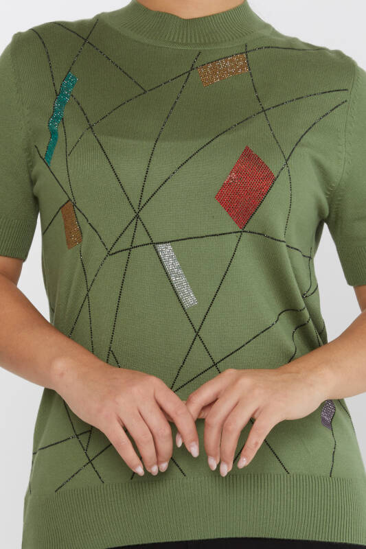 ژاکت بافتنی سنگ رنگارنگ آستین کوتاه خاکی - 30078 | KAZEE (مجموعه 4 عددی L-XL-2XL-3XL)