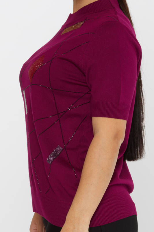 ژاکت بافتنی سنگ رنگارنگ آستین کوتاه یاسی - 30078 | KAZEE (مجموعه 4 عددی L-XL-2XL-3XL)