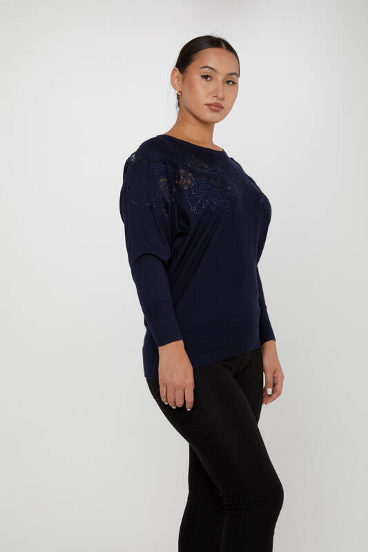 ژاکت بافتنی یقه دوزی سرمه ای - 30925 | KAZEE (مجموعه 4 M-L-XL-2XL)