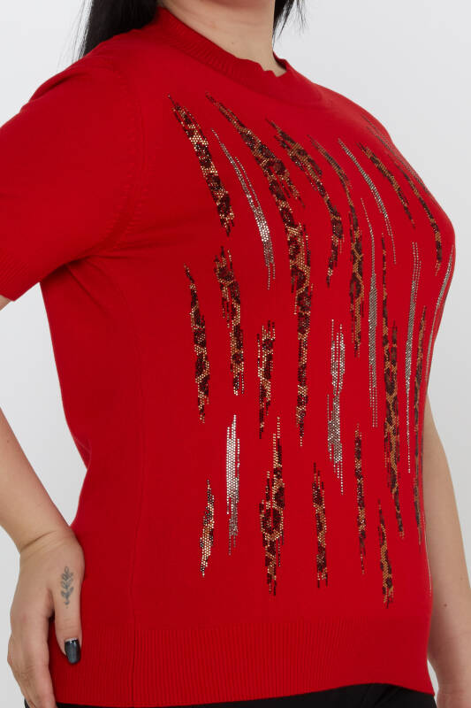 ژاکت بافتنی یقه دوزی سنگ پلنگی قرمز - 31565 | KAZEE (ست 3 M-L-XL)