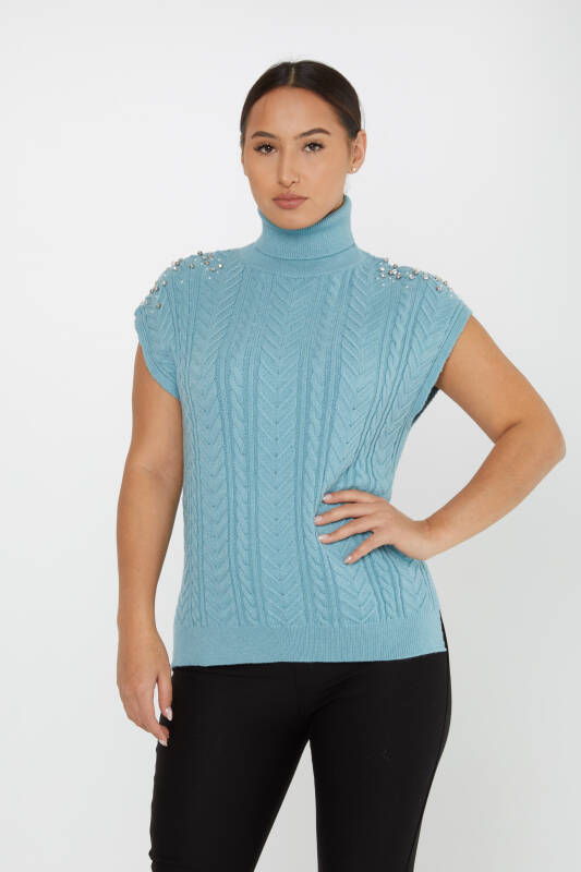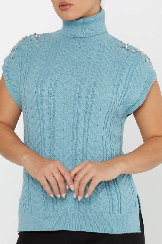 ژاکت بافتنی آستین سنگی آستین کوتاه آبی - 30242 | KAZEE (مجموعه 3 S-M-L)