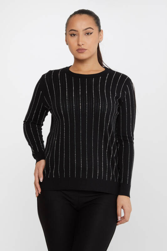 ژاکت بافتنی راه راه سنگ دوزی آستین بلند مشکی-اکرو - 31110 | KAZEE (ست 3 M-L-XL)