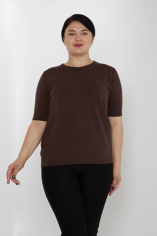 ژاکت بافتنی قهوه آستین کوتاه با جزئیات براق - 31714 | KAZEE (مجموعه 3 عددی XL-2XL-3XL)