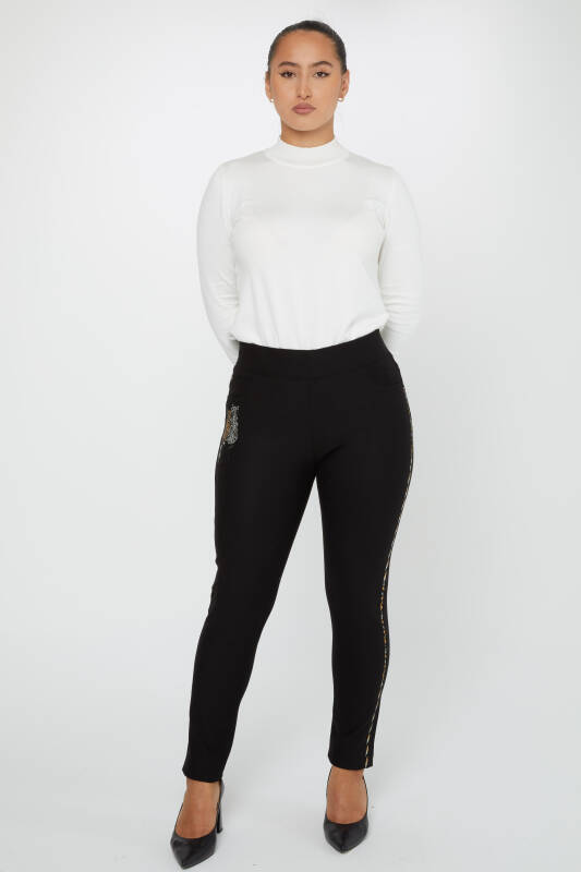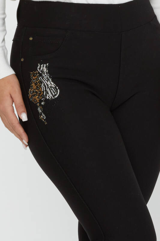 شلوار سنگی طرح گربه مشکی دوزی - 3734 | KAZEE (مجموعه 4 42-44-46-48)