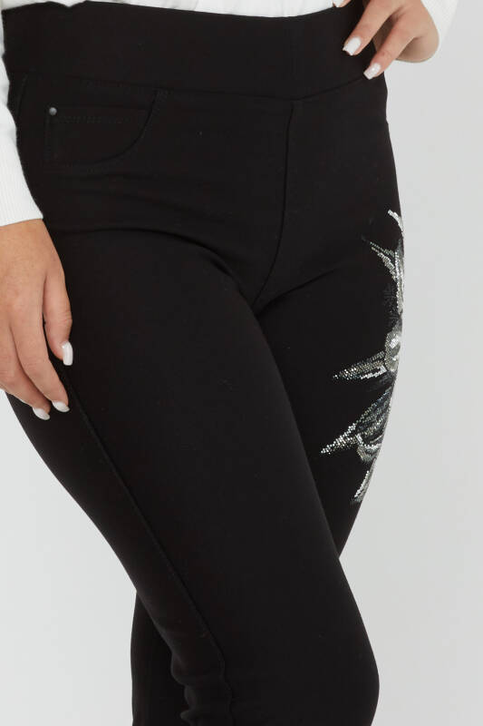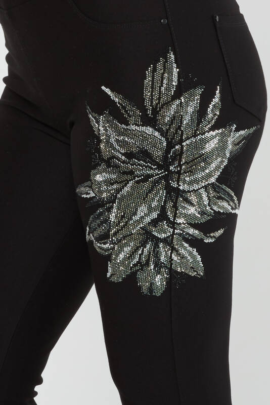 شلوار سنگ گلدوزی و کمر کش مشکی - 3710 | KAZEE (مجموعه 4 42-44-46-48)