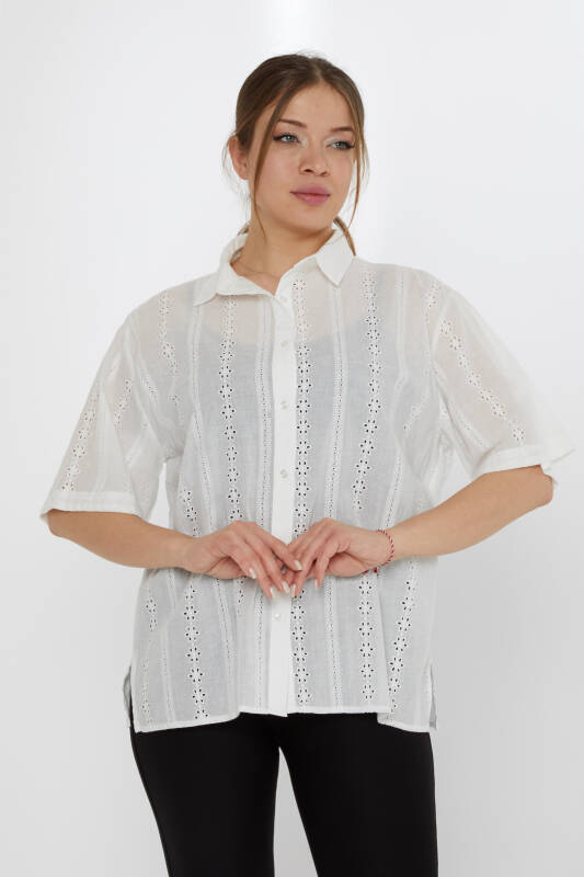 پیراهن آستین کوتاه اکرو سوراخ دار - 20508 | KAZEE (مجموعه 3 40-42-44)