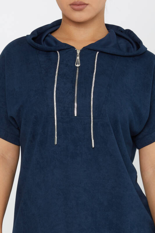 سویشرت زیپ دار آستین کوتاه نیلی - 79992 | KAZEE (ست 3 M-L-XL)