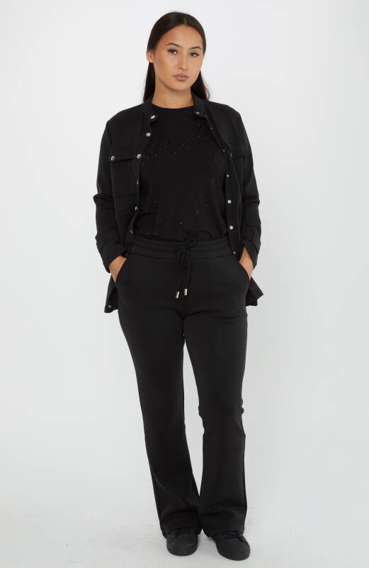 ست لباس ورزشی با سنگ دوزی مشکی با جزئیات - 17622 | KAZEE (مجموعه 4 عددی S-M-L-XL)تعداد مجموعه: 4 عدد