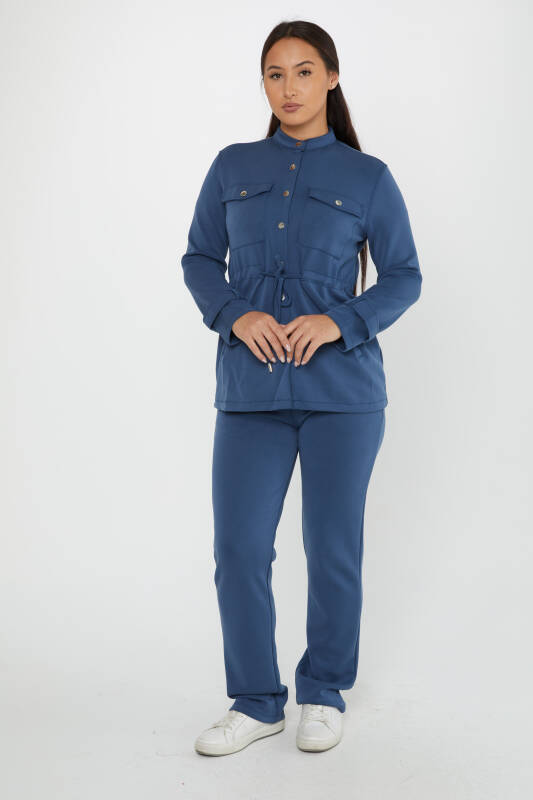 ست کت و شلوار ست دکمه ای سنگ دوزی با جزئیات نیلی - 17622 | KAZEE (مجموعه 4 عددی S-M-L-XL)