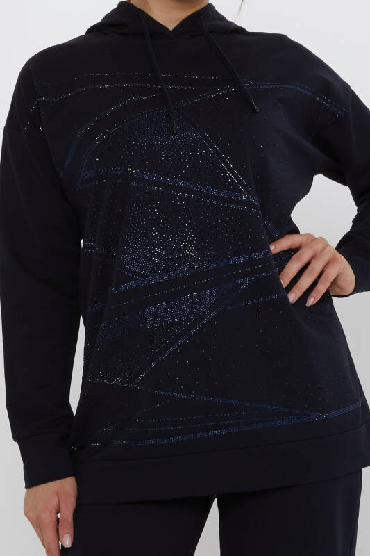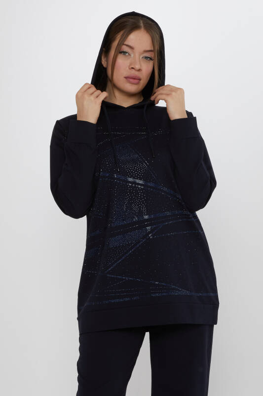 ست لباس ورزشی با جیب و کاپوت با جزئیات آبی سرمه ای - 17900 | KAZEE (ست 3 M-L-XL)