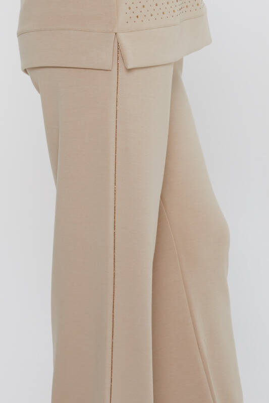 ست گرمکن سنگ دوزی آستین کوتاه بژ - 17867 | KAZEE (ست 3 L-XL-2XL)