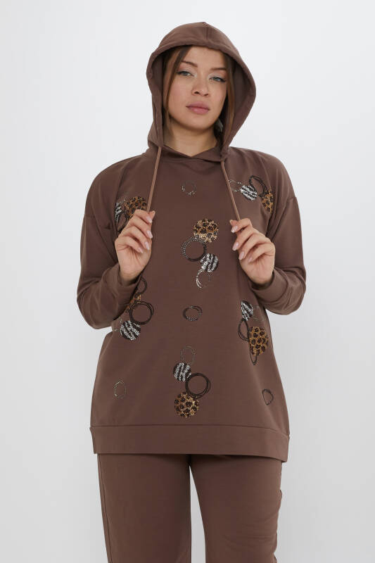 ست گرمکن با جزئیات کاپوت طرح سنگ قهوه ای - 17898 | KAZEE (ست 3 M-L-XL)