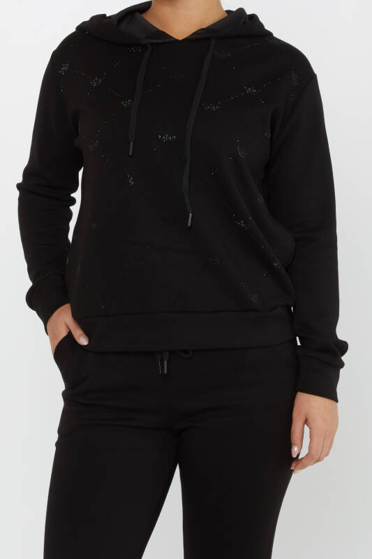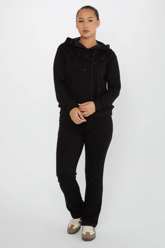 ست کت و شلوار ورزشی مشکی با جیب گلدوزی سنگ تاج - 17625 | KAZEE (مجموعه 4 عددی S-M-L-XL)