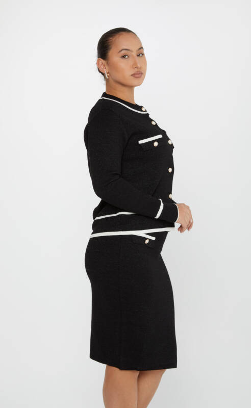 کت و شلوار دو تیکه دکمه مرواریدی آستین بلند مشکی - 30813 | KAZEE (مجموعه 4 M-L-XL-2XL)