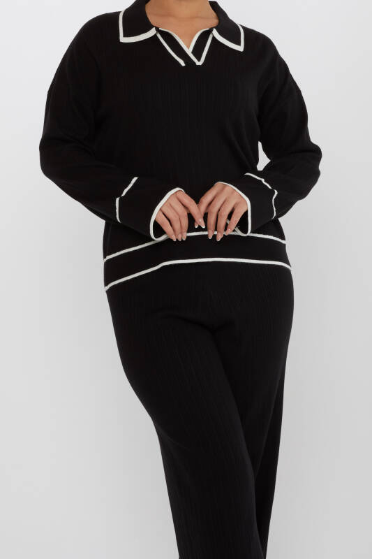 کت و شلوار دو تیکه آستین بلند یقه مشکی - 31233 | KAZEE (مجموعه 2 M-L)