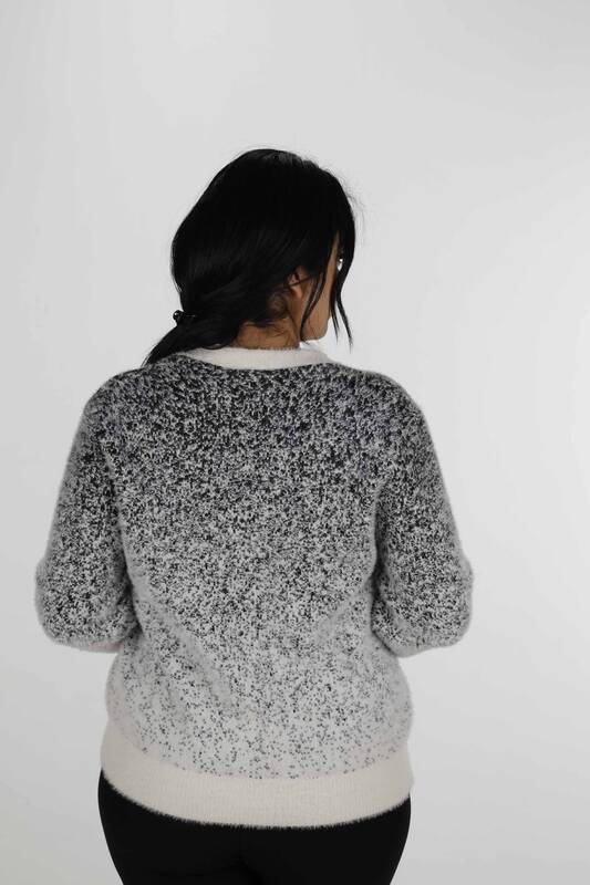 V-Neck Angora Cardigan Ecru Black - 30897 | KAZEE (مجموعه 4 عددی S-M-L-XL)