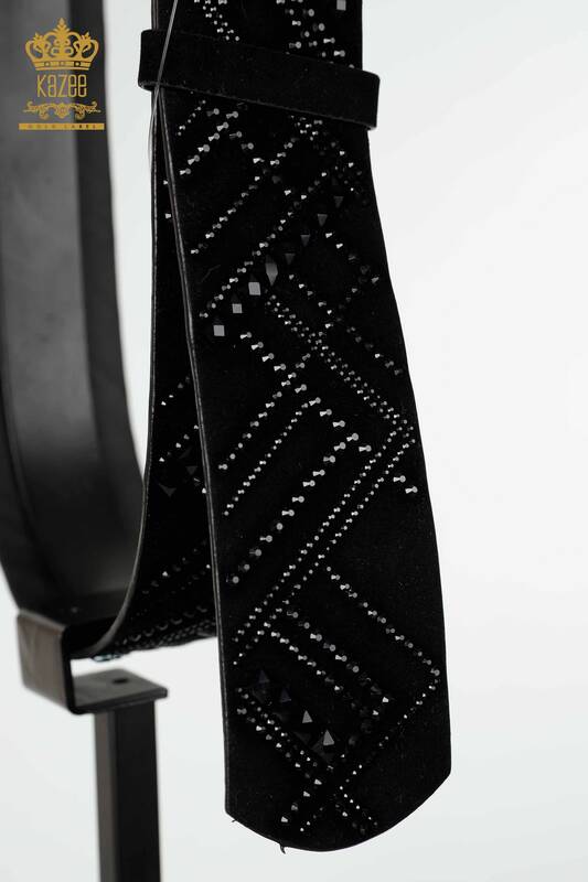 فروش عمده کمربند زنانه سنگ کریستال راه راه مشکی دوزی - 540 | KAZEE