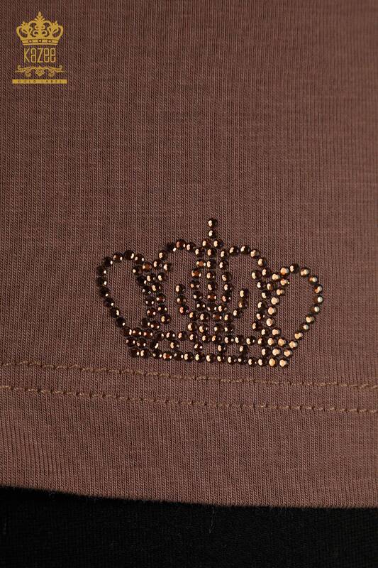 فروش عمده بلوز زنانه آستین کوتاه پایه یقه خدمه قهوه ای - 79562 | KAZEE