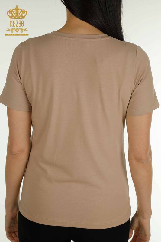 فروش عمده بلوز زنانه آستین کوتاه پایه یقه بژ تیره - 79562 | KAZEE