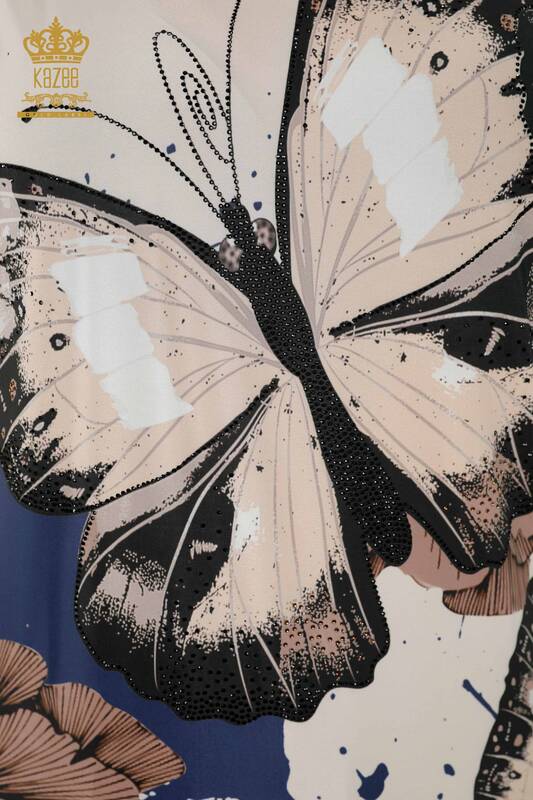 فروش عمده بلوز زنانه طرح سنگ پروانه ای بژ دوزی - 77900 | KAZEE