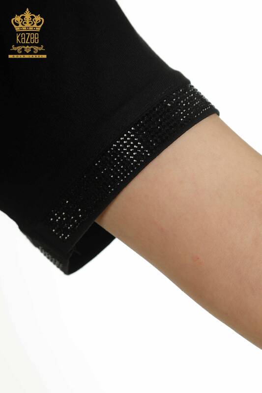 فروش عمده بلوز زنانه دگمه دار سنگ دوزی آستین کوتاه مشکی - 79297 | KAZEE