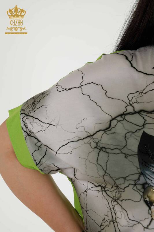 فروش عمده بلوز زنانه آستین کوتاه سنگ دوزی چاپ دیجیتال - 12071 | KAZEE