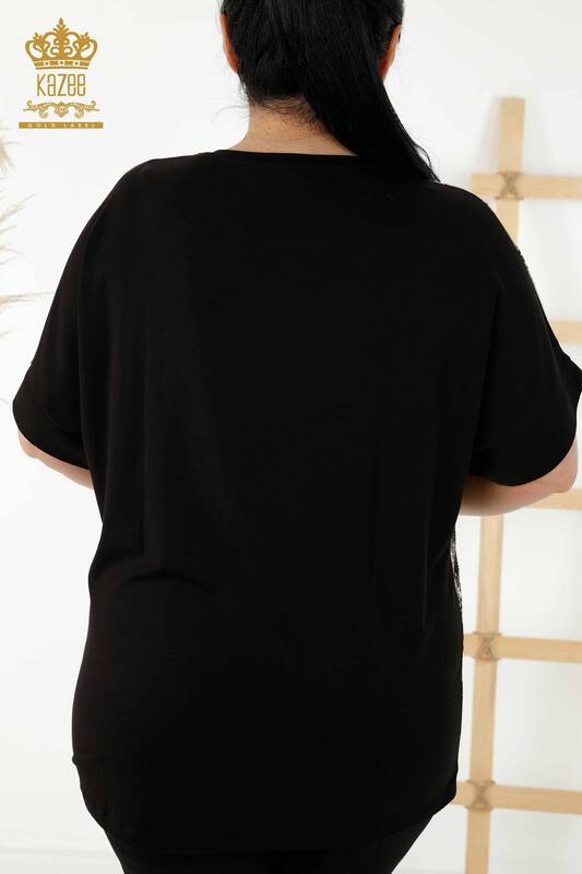 فروش عمده بلوز زنانه چاپ دیجیتال آستین کوتاه دوزی شده - 12078 | KAZEE
