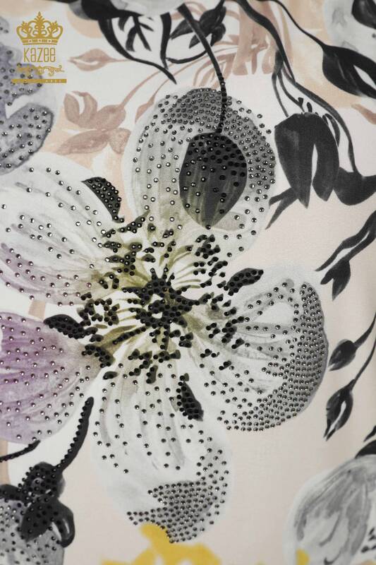 فروش عمده بلوز زنانه چاپ دیجیتال زعفرانی مدل آمریکایی - 12001 | KAZEE