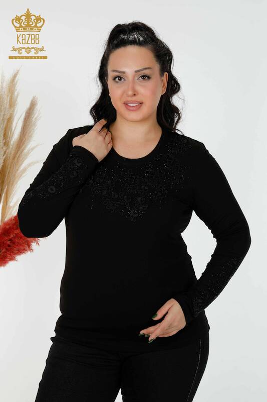 فروش عمده بلوز زنانه سنگ کریستال گلدوزی شده مشکی - 79010 | KAZEE