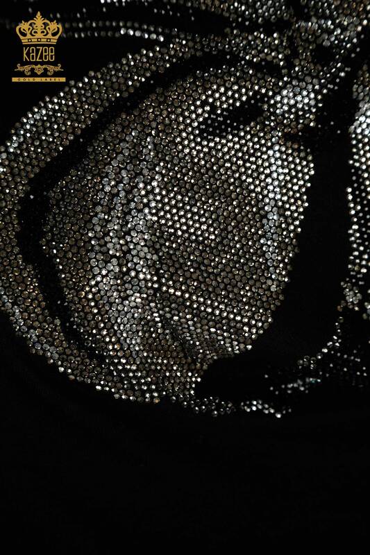 فروش عمده بلوز زنانه گل دوزی سنگ دوزی مشکی - 79357 | KAZEE