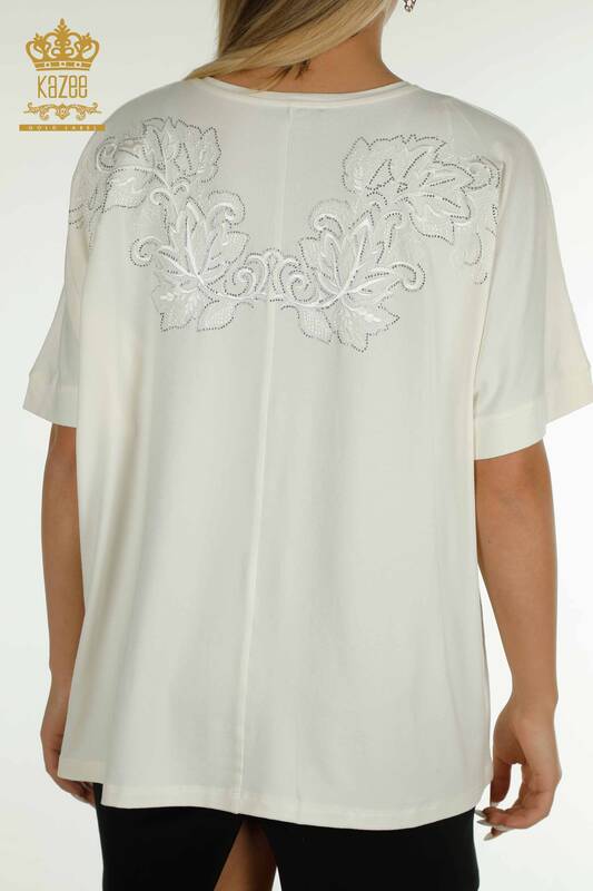 فروش عمده بلوز زنانه اکرو طرح دار سنگ دوزی - 79090 | KAZEE