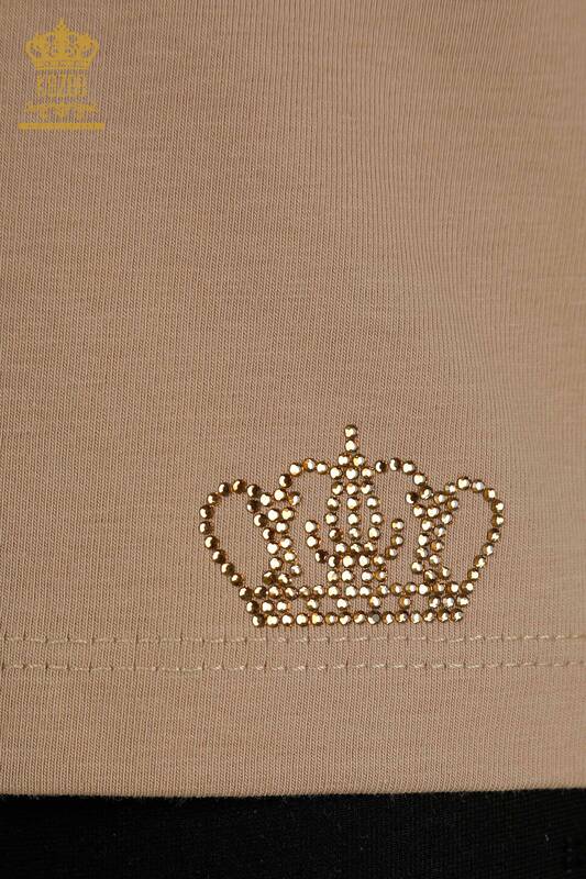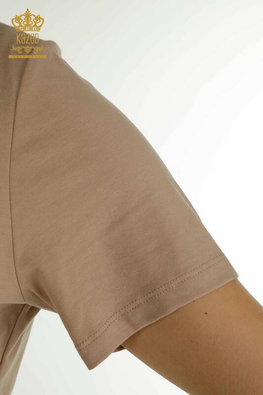 فروش عمده سنگ بلوز زنانه آرم آستین کوتاه دوزی Mink - 79560 | KAZEE