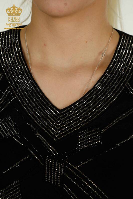 فروش عمده بلوز زنانه آستین بلند سنگ دوزی مشکی - 79374 | KAZEE