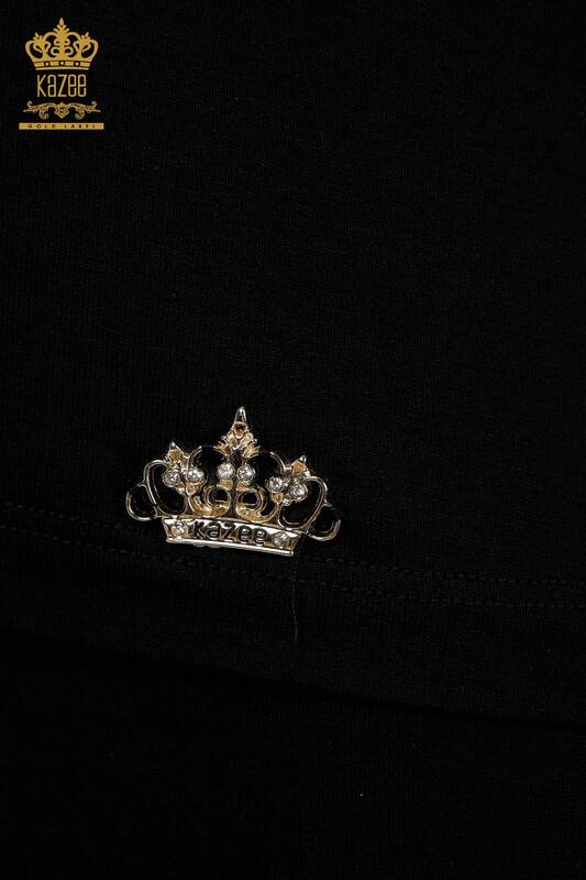 فروش عمده بلوز زنانه آستین کوتاه لوگوی پایه مشکی - 79287 | KAZEE