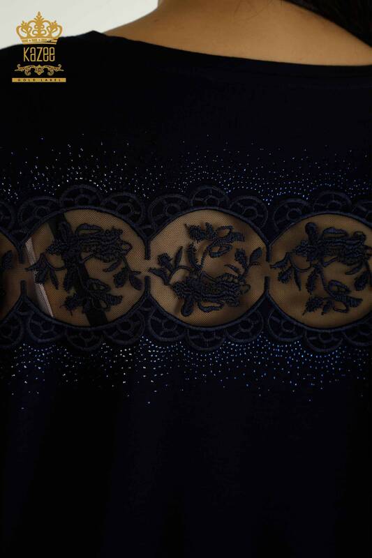 فروش عمده بلوز زنانه آستین کوتاه سنگ دوزی شده سبز با جزئیات - 79302 | KAZEE