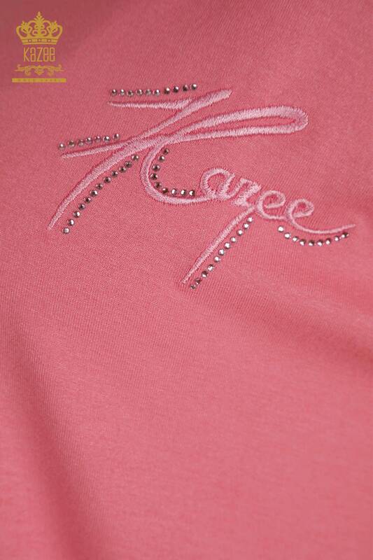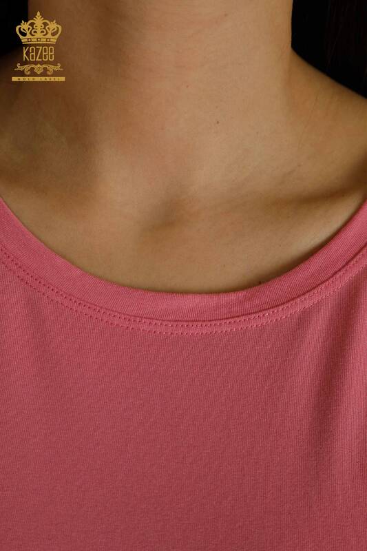 فروش عمده بلوز زنانه آستین کوتاه تول دوزی با جزئیات صورتی - 79302 | KAZEE