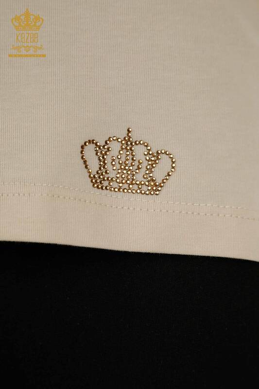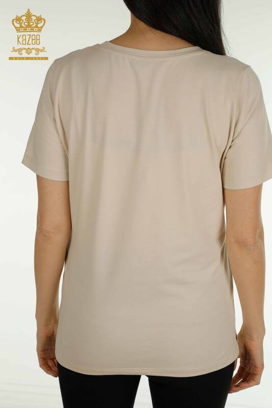 فروش عمده بلوز زنانه آستین کوتاه یقه خدمه بژ روشن - 79563 | KAZEE