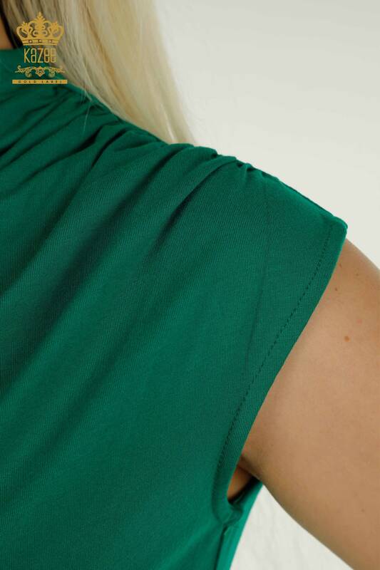 فروش عمده بلوز زنانه آرم آستین صفر سبز - 79312 | KAZEE