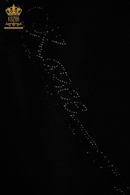 فروش عمده بلوز زنانه سنگ دوزی یقه دوزی آستین کوتاه مشکی - 79295 | KAZEE