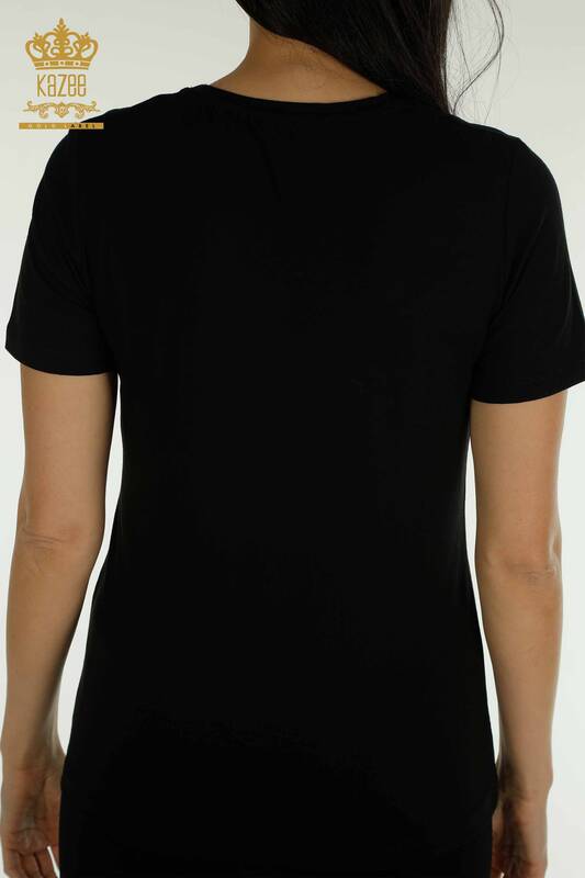 فروش عمده بلوز زنانه سنگ دوزی مشکی با جزئیات سنگ سنجاقک - 79362 | KAZEE