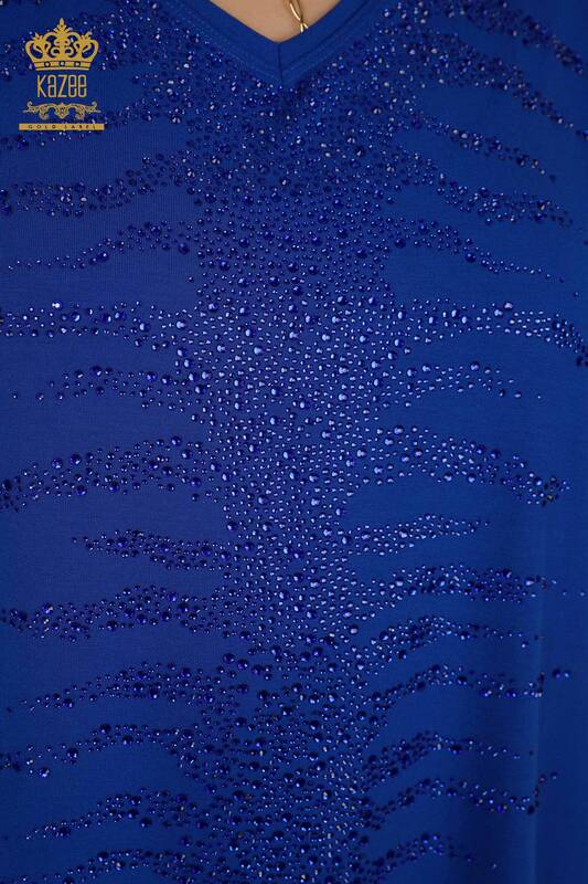 فروش عمده سنگ بلوز زنانه ساکس آستین کوتاه طرح دار - 79321 | KAZEE