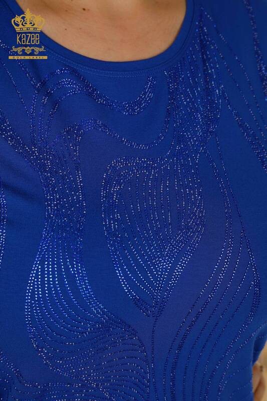 فروش عمده ساکس آستین کوتاه بلوز زنانه طرح دار سنگ دوزی - 79329 | KAZEE