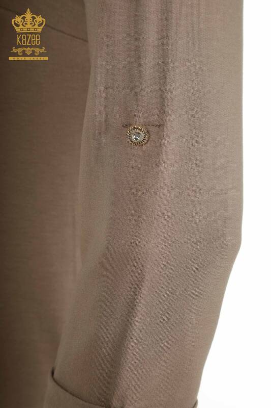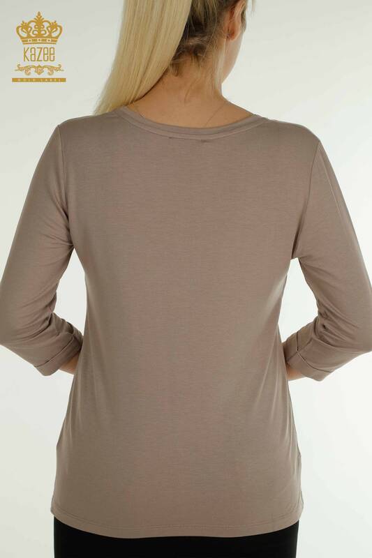 فروش عمده بلوز زنانه یقه وی راسو سنگ دوزی - 79309 | KAZEE
