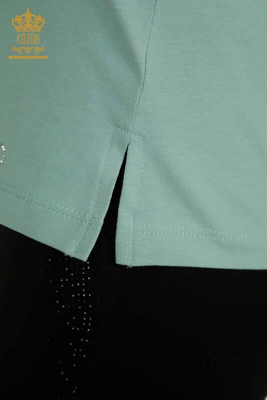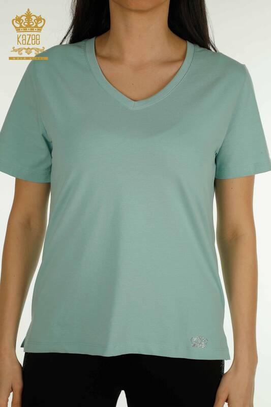 فروش عمده بلوز زنانه یقه وی شکل سنگ دوزی نعناع - 79564 | KAZEE
