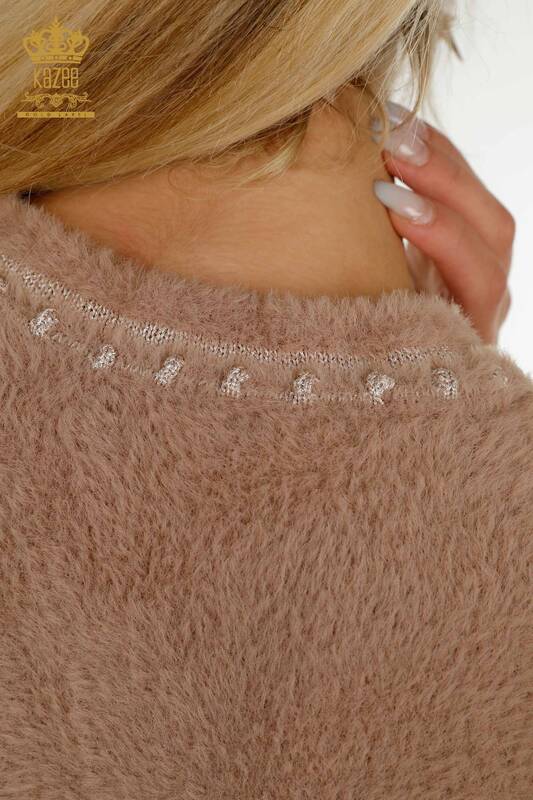 فروش عمده ژاکت کش باف پشمی زنانه آنگورا دو جیب براق بژ - 30371 | KAZEE
