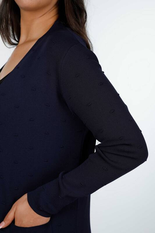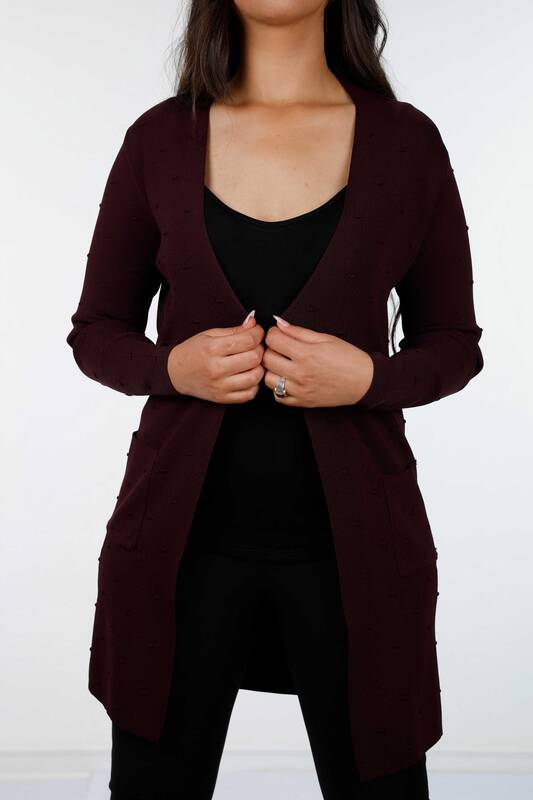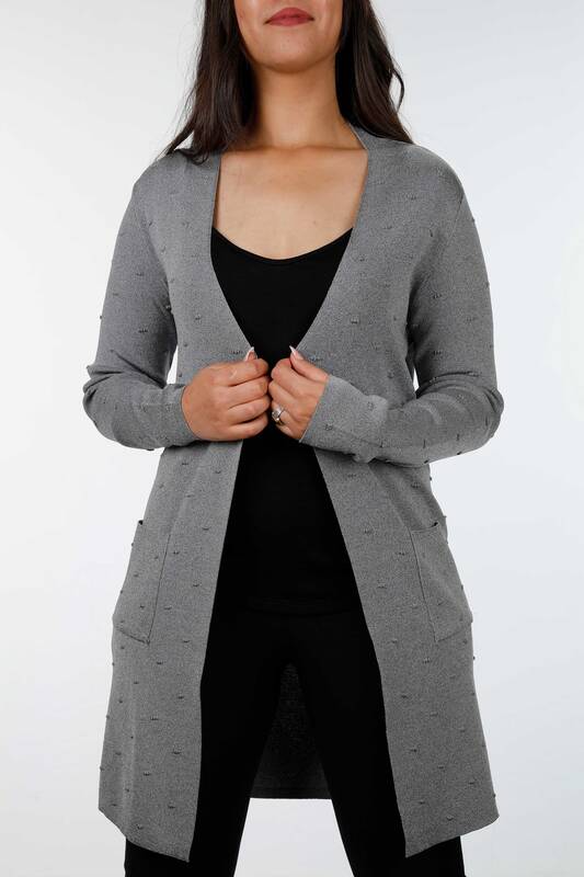 عمده فروشی ژاکت کش باف پشمی زنانه ویسکوز بلند با جیبی - 15698 | KAZEE