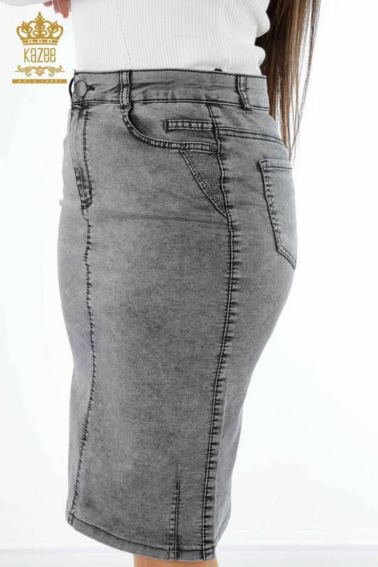 فروش عمده دامن جین زنانه سنگ دوزی تکست جیبی دوزی - 4182 | KAZEE